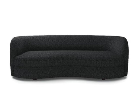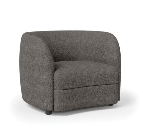 Compact fitted kidney-shaped single cushion, curved arms and backrest, and barely-there wooden legs contribute to this piece's tight fit and ultra comfort. Besides the intriguing shape, the other draw here is the visual impact it brings to any modern space. The boucle fabric features metallic undertones which when paired with a neutral color palette under certain lighting conditions, allow the texture to glitter and shine in the most undeniably chic way.