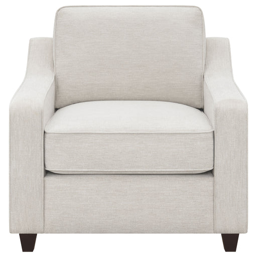 CoasterWrapped in a cheerful, beige woven chenille upholstery, this seating set exudes a look of sophistication. Sloped track arms add elegant lines while...