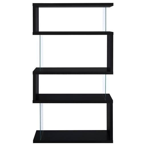 CoasterWith a striking, zig-zag design, this bookcase exudes contemporary charm. Though they appear to be open, its sides are enhanced by tempered glass p...