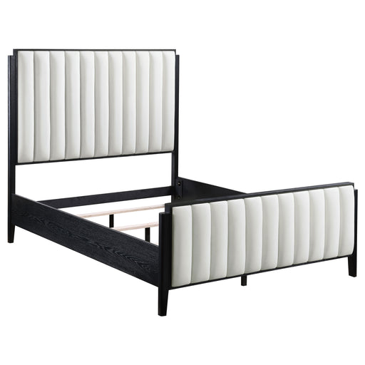 CoasterUpgrade your bedroom with the fresh, refined style of a four-piece modern bedroom set. In black, the set features ivory upholstery with vertical ch...