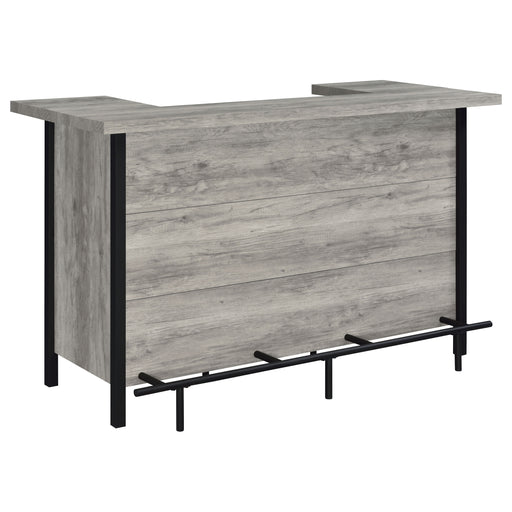 CoasterAdd functionality and style to an entertainment space with this rustic bar unit, appointed in a gray driftwood-inspired finish with distinctive met...