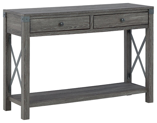 Signature Design by Ashley®Inspired by the sheer simplicity and weatherworn beauty of primitive furniture, this sofa table brings a relaxed sense of style into your space. Sh...