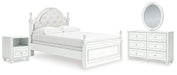 Kozlani Full Upholstered Panel Bed, Dresser, Mirror and Nightstand