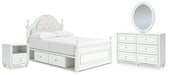 Kozlani Full Upholstered Panel Storage Bed, Dresser, Mirror and Nightstand