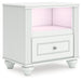 Details PCB1819B10: Includes upholstered panel headboard, panel footboard, roll slats and side storage with rails, Made with engineered wood (MDF/particleboard/plywood) and decorative laminate for the right balance of affordability and durability , Matte white finish, Decorative laminate replicates natural or man-made material surfaces with consistent color, pattern and texture , Light gray polyester upholstery on headboard, Crystal drawer knobs; acrylic ball tops, 2 smooth-gliding drawers; drawer interiors are lined with a faux linen laminate for a clean, finished look, Open cubbies accommodate any 10.5" W x 10.5" D x 11" H storage bin (not included), LED light strip with remote-controlled color and brightness options; included remote holder keeps remote for lights discreet and accessible, Power cord included; UL Listed, Bed does not require additional foundation/box spring; accommodates most zero clearance adjustable bases with the addition of a bunkie board, Mattress available, sold separately, Minor assembly required, PCB1819B2: Includes dresser and mirror, Made with engineered wood (MDF/particleboard/plywood) and decorative laminate for the right balance of affordability and durability , Matte white finish, Decorative laminate replicates natural or man-made material surfaces with consistent color, pattern and texture , Crystal drawer knobs, 6 smooth-gliding drawers, Drawer interiors are lined with a faux linen laminate for a clean, finished look, Safety is a top priority, clothing storage units are designed to meet the most current standards for stability, ATM F 2057 (ASTM International), Drawers extend out to accommodate maximum access to drawer interior while maintaining safety, Mirror can be mounted on wall vertically , Minor assembly required, PCB1819-91: Made with engineered wood (MDF/particleboard/plywood) and decorative laminate for the right balance of affordability and durability, Matte white finish, Decorative laminate replicates natural or man-made material surfaces with consistent color, pattern and texture, Crystal drawer knob, 1 smooth-operating drawer, Drawer interior is lined with a faux linen laminate for a clean, finished look, Open shelf, USB-A and USB-C charging ports, Pink, purple and white LED lighting options; touch button control, Power cord included; UL Listed, Minor assembly required,