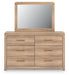 | Details | Includes dresser and mirror, Made with engineered wood (MDF/particleboard/plywood) and decorative laminate for the right balance of affordability and durability , Warm finish with replicated oak grain and authentic touch, Decorative laminate replicates natural or man-made material surfaces with consistent color, pattern and texture, Hardware with bronze-tone finish, 6 smooth-gliding drawers , Drawer interiors are lined with a faux linen laminate for a clean, finished look , Mirror attaches to back of dresser; can also be mounted on wall horizontally, Safety is a top priority, clothing storage units are designed to meet the most current standard for stability, ASTM F 2057 (ASTM International), Drawers extend out to accommodate maximum access to drawer interior while maintaining safety, Minor assembly required | |