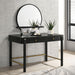 Add a chic vanity mirror over a vanity desk or your dresser to create the ideal place to get ready for the day. The mirror features a round profile with a wooden frame and straight, horizontal shelf. Its black finish is perfect to complement the wood grain look, offering coastal hues that bring neutral warmth. The mirror includes a jewelry tray that's perfectly sized for fragrance bottles and other cosmetics, keeping them close at hand without cluttering your table or dresser top. Even without a table below, this vanity mirror is a chic addition to your bedroom or dressing area.