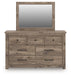 Rusticott Queen Panel Bed with Mirrored Dresser