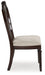 | Details | Made with solid wood frames and cast resin components, Cherry brown finish, Polyester upholstery, Cushioned seat, Includes adjustable levelers, Assembly required | |