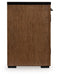 Details Made with hardwood solids, mango wood veneer and MDF substrates, Two-tone finish (medium warm brown wood tone and matte black), Bar pulls with blackened steel finish, Smooth-gliding drawer, 2 cabinet doors, 2 adjustable shelves, Open storage area, Assembly required