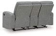 | Details | Dual-sided recliner; middle seat remains stationary, Pull tab reclining motion, Corner-blocked frame with metal reinforced seat, Attached cushions, High-quality foam cushions wrapped in poly fiber, Polyester upholstery, Center console with 2 cup holders and hidden storage | |