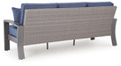 High style crafted for low-maintenance living. Turn your outdoor space into a sweet retreat with this sofa. The casually cool piece entices in an easy-breezy gray resin wicker over an all-weather aluminum frame, for an upscale aesthetic that’s downright durable. Its plush seat cushions, wrapped in high-performance Nuvella® fabric, are indulgently comfortable yet so easy to maintain. Accent pillows add delightful flair.