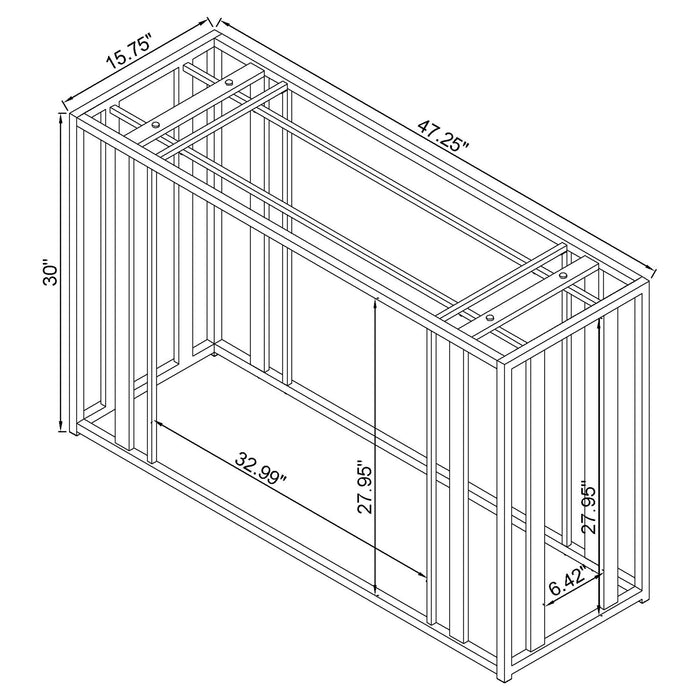 This modern rectangular console table features a clear tempered glass top paired with a geometric base crafted from heavy-gauge metal with a sleek electroplated finish. The open design creates a contemporary aesthetic, offering both elegance and durability. Ideal for placement in entryways, hallways, or behind sofas, this console table provides a spacious surface for displaying decor or organizing essentials. Its scratch-resistant materials ensure long-lasting quality with easy maintenance.