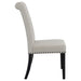 Blending timeless elegance with plush comfort, this side chair enhances any dining space. Its high backrest features a classic button-tufted design, adding depth and sophistication. A rolled top and hand-applied nailhead trim create refined detailing, while the generously padded seat ensures lasting comfort. Supported by sturdy, tapered legs, this chair is built for both beauty and durability. Whether part of a formal setting or an inviting everyday dining space, it brings grace and charm to the table.