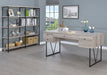 This handsome writing desk combines minimalist design with industrial function. It's fashioned with four drawers complete with full extension glides for convenient storage capacity. The table top has wood grain accents that evoke character and warmth as well as space for all necessary work materials. The metal base and legs have a black finish that's a magnificent contrast to the grey driftwood design. Up your productivity with this desk that's ideal for any office space.