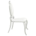 This dining chair blends classic form with modern materials for a bold statement. An oval backrest and gently flared silhouette evoke traditional influence, while the stainless steel frame and Queen Anne cabriole legs add a sculptural presence. Upholstered in smooth white faux leather, the cushioned seat and back provide comfort with easy care. The polished chrome finish completes the look with reflective shine and visual contrast.