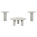 This coffee table set, featuring a coffee table and end table, showcases genuine white marble surfaces and cylindrical pedestal bases. The fluted and grid-textured design adds a refined architectural touch, blending classic elegance with modern minimalism. Perfect for creating a cohesive look in your living space, these tables are crafted for durability and timeless appeal. Ideal as functional and decorative pieces, this occasional table set brings sophistication to any contemporary or upscale interior.