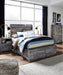Rest in the casually cool style and practicality of this queen panel storage bed. Its driftwood and smoky finish gives this bed an easy-going vibe that's perfect for creating a relaxed getaway in the room. Four underbed storage drawers and two footboard storage drawers provide ample room for stowing away spare bedding and more. Clean lines and modern charm blend for a fuss-free look. Included slats eliminate need for foundation/box spring. Mattress sold separately.