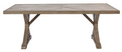 Sporting an easy-on-the-eyes look inspired by driftwood, this dining table elevates the art of alfresco living. Beautiful and durable enough for indoor and outdoor use, the high-style/low maintenance table charms with X-leg farmhouse styling, while its thick porcelain tabletop adds a natural complement.