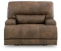 Expansive and elegant, this power recliner makes a sizable style statement. Its large scale enhances the luxe look and magnifies the beauty of faux leather in an earth tone, punctuated with jumbo stitching. One-touch power adjustable headrests mean infinite ways to recline in stylish comfort. USB charging completes the experience.