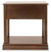 Inlay accents, fluted details and an oil-rubbed effect on the rich finish give this chairside end table such great character. The base shelf is just the place for a storage basket, decorative vase or other accent piece. You’ll love the deep drawer with removable tray offering handy storage, too.