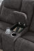 Details Pull tab reclining for full body comfort, Reinforced frame and metal seat box provide added stability, Attached cushions, High-quality foam cushions wrapped in poly fiber, Faux leather upholstery, Center console with 2 cup holders and hidden storage, Ambient LED lighting on base with 3 color options: red, white and blue, Power cord included; UL Listed