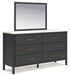 | Details | Includes dresser and mirror, Made with engineered wood (MDF/particleboard/plywood) and decorative laminate for the right balance of affordability and durability, Matte black finish with subtle replicated wood grain, Replicated white marble top, Decorative laminate replicates natural or man-made material surfaces with consistent color, pattern and texture , Handles with light bronze-tone finish, 6 smooth-gliding drawers , Drawer interiors are lined with a faux linen laminate for a clean, finished look, Mirror attaches to back of dresser; can also be mounted on wall horizontally or vertically, Safety is a top priority, clothing storage units are designed to meet the most current standard for stability, ASTM F 2057 (ASTM International), Drawers extend out to accommodate maximum access to drawer interior while maintaining safety, Minor assembly required | |