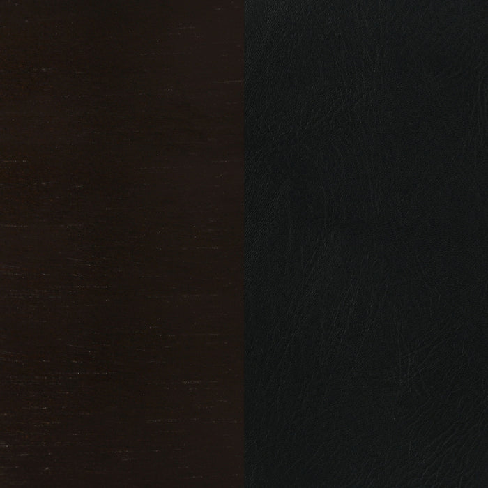 Enjoy casual elegance with this counter height bar chair, crafted from rich cappuccino wood and topped with a plush black leatherette swivel seat. The open-back design adds a bold decorative touch, while angled legs and a round footrest provide reliable support. Perfect for kitchen counters or dining spaces, this chair offers the convenience of a swivel often found in counter stools, blending style with everyday comfort.