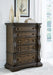 Details B947B5: Includes upholstered panel headboard, upholstered panel footboard and panel rails, Made with hardwood solids, oak and ash swirl veneers, MDF substrates and cast resin components, Dark brown finish, Polyester upholstery with button tufting, Foundation/box spring required, sold separately, Mattress available, sold separately, Assembly required, B947B1: Includes dresser and mirror, Made with hardwood solids, oak and ash swirl veneers, MDF substrates and cast resin components, Dark brown finish, 6 smooth-gliding drawers with dovetail construction (top drawer felt lined), Drawer pulls with antiqued goldtone finish, Mirror attaches to back of dresser, B947-46: Made with hardwood solids, oak and ash swirl veneers, MDF substrates and cast resin components, Dark brown finish, 5 smooth-gliding drawers with dovetail construction (top drawer felt lined), Drawer pulls with antiqued goldtone finish, B947-93: Made with hardwood solids, oak and ash swirl veneers, MDF substrates and cast resin components, Dark brown finish, 2 smooth-gliding drawers with dovetail construction (top drawer felt lined), Pull-out tray behind bottom drawer, Drawer pulls with antiqued goldtone finish, 110V power supply with dual USB charging ports, Power cord included; UL Listed,