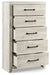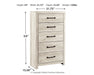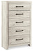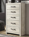 Details Made of engineered wood (MDF/particleboard) and decorative laminate, Wispy white finish over replicated oak grain with authentic touch, Large-scale hardware with dark finish, 5 smooth-gliding drawers, Drawer interiors are lined with a faux linen laminate for a clean, finished look, Safety is a top priority, clothing storage units are designed to meet the most current standard for stability, ASTM F 2057 (ASTM International), Drawers extend out to accommodate maximum access to drawer interior while maintaining safety