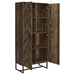 • Tall storage cabinet with herringbone-patterned doors for bold visual texture