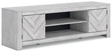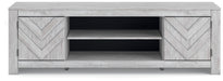 This TV stand embraces a classically charming aesthetic and repurposes it for modern living. Its whitewash replicated paint appeals to your love of vintage character, while the chic chevron pattern is effortlessly on trend. And with hidden storage behind the doors, your media accessories stay tucked away in style.