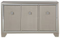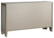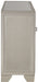 Details Made with engineered wood and textured laminate, Silvertone metallic finish, Mirrored top, Faux crystal and chrome-tone finished door pulls, Beveled mirror accents, Bead framed doors, 2 adjustable shelves, Assembly required