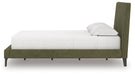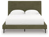 Nostalgic style, retooled for today’s trends. This queen upholstered bed puts an elevated twist on mod aesthetics. Its chic sage green hue reflects the mid-century vibes you love, while the low profile incorporates contemporary motifs. Roll slats round out the design with added convenience, eliminating the need for a box spring. With this bed, you can build your bedroom into a modern haven with a touch of retro-cool flair.