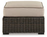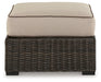 Who says the great outdoors isn’t made for luxury living? This cushioned ottoman offers all the high-end design, plush comfort and durability you could ask for, and then some. Its all-weather, rust-proof aluminum frame provides the easy-breezy wicker look you love without the high maintenance. Rest assured, the high-performing Nuvella® fabric is made to stand up to the elements.