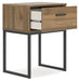 Details Made with engineered wood (MDF/particleboard/plywood) and decorative laminate for the right balance of affordability and durability, Rich honey brown finish over replicated walnut grain with authentic touch, Decorative laminate replicates natural or man-made material surfaces with consistent color, pattern and texture, Smooth-gliding drawer with vinyl-wrapped sides and back for durability, Metal legs and handle with dark pewter-tone finish, Assembly required