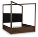 | Details | Includes canopy, upholstered headboard, footboard, rails, posts and slats, Made with hardwood solids, mango wood veneer and MDF substrates , Side rails feature laminated solid hardwood slat support rails (or LVL) with glued and screwed blocking for added strength, Complex, rich dark brown finish, Foam headboard cushion with polyester upholstery , Measure room, including ceiling height, to ensure bed clears fans and light fixtures, Foundation/box spring required, sold separately , Mattress available, sold separately , USB-A and USB-C charging ports, Power cord included; UL Listed, Assembly required | |