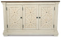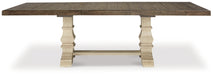 Details D647D17: Made with wood, veneer and engineered wood, Tabletop with textural weathered oak finish , Base with textured antiqued white finish , Removable center leaf, Table extends to 103" by pulling both ends and dropping in leaf, Seats up to 10 with removable leaf in place, Dining chairs sold separately, Assembly required, D647-01: Made of solid wood, Antiqued white finish, Cushioned seat upholstered in heavy woven polyester fabric, Assembly required, D647-02: Made of wood and engineered wood, Antiqued white finish, Cushioned seat with heavy woven polyester upholstery on front/back, Assembly required,