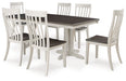 Make a farmhouse-inspired statement with this dining package. Its clean two-tone finish brings the charm of the countryside to your dining room. A versatile set, it adds a casually comfortable vibe to a variety of spaces.