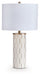 Give your office or sofa-side lighting a sleek upgrade with this table lamp. A masterfully crafted mosaic pattern on the base brings a pop of pattern to the crisp white finish. Complemented by brass-tone accents, it’s sure to shine in contemporary spaces.