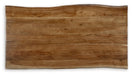 Details Made with acacia wood, Solid wood tabletop with natural live edge, Light wood-tone finish, Seats up to 6, Chairs sold separately