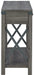 Details Made of metal and engineered wood, Gray decorative wood grain laminate, Metal crossbuck accents, 2 smooth-gliding drawers, Fixed lower shelf, Assembly required