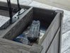 | Details | Made of metal and engineered wood, Gray decorative wood grain laminate, Metal crossbuck accents, Lift top design; hidden storage under lid, Fixed lower shelf, Assembly required | |