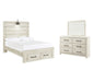 Cambeck Full Panel Bed with 2 Storage Drawers with Mirrored Dresser