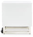 | Details | Made with MDF substrates, High-gloss white finish, Black acrylic laminate drawer front, 1 smooth-gliding drawer, Open display shelf, Legs with chrome-tone finish, 110V power supply with USB-A and USB-C charging ports, Power cord included; UL Listed, Assembly required | |