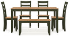 Complement your home’s simply relaxed sensibility with this dining table, chairs and bench. A charming green hue offers a chic contrast to the natural wood tone, for a casual look that vibes with a variety of aesthetics. Whether you're sipping your morning coffee, settling in for dinner or working from home, this set is smartly designed for everyday comfort and style.