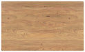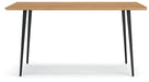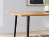 Details Made with solid acacia wood top, Light natural wood finish, Metal legs in matte black powder coat finish, Seats up to 6, Assembly required