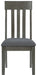 | Details | Made with solid wood, Antiqued gray finish, Upholstered in gray textural polyester fabric, Cushioned foam seat, Contoured comb-back design, Assembly required | |