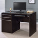 • Sleek rectangular computer desk in rich cappuccino finish for modern appeal