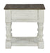 What a fresh interpretation of country classic style. Inspired by American farmhouse craftsmanship, but with an elevated sensibility, this square end table blends distinctive details such as turned post accents and raised drawer fronts for a substantial look that feels right at home. Those who appreciate rustic character should take note of the table’s thick crown moulding, beautified with a vintage two-tone finish. Robust legs lend a hearty, substantial feel ready to withstand the test of time.